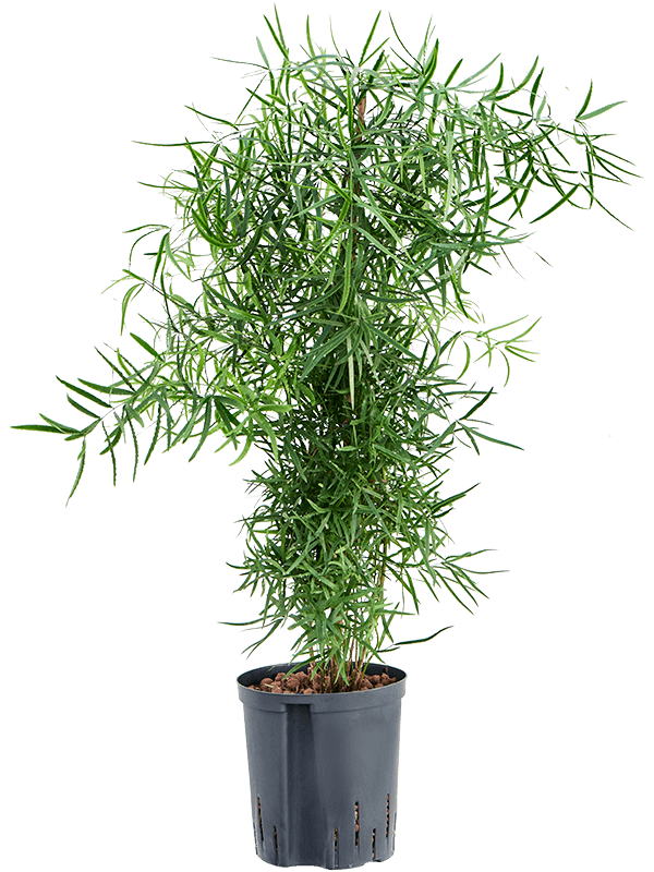 Deze Asparagus falcatus wordt geleverd als hydrocultuur plant. Hydrocultuur planten groeien op water met behulp van hydrokorrels (kleikorrels), waardoor de wortels optimaal zuurstof en voeding opnemen.
