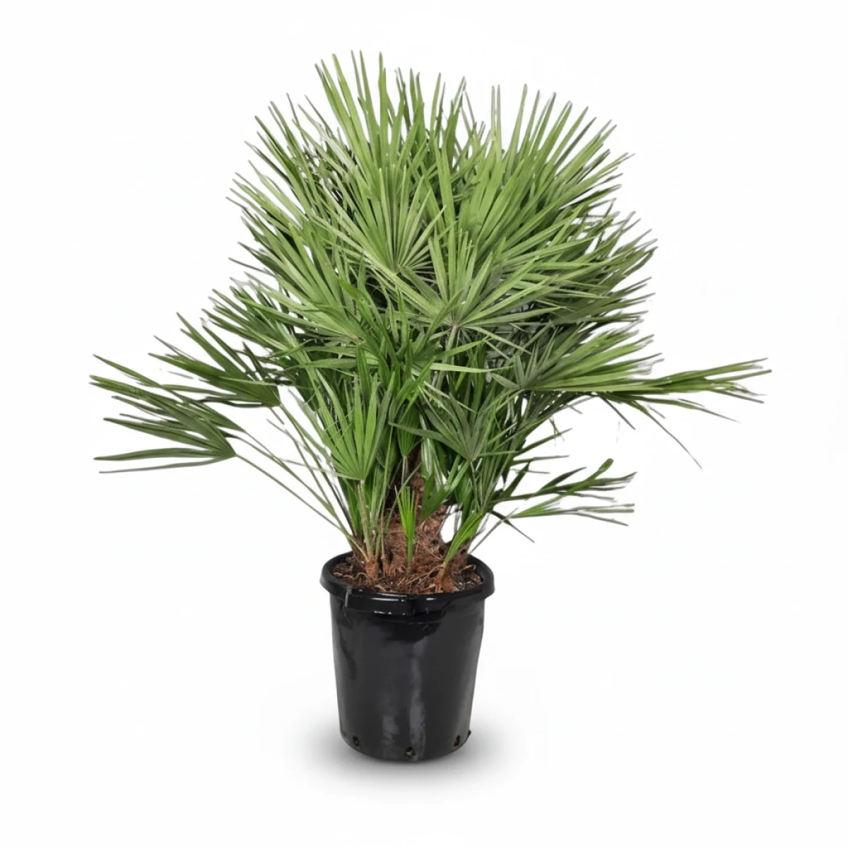 De bladeren van deze Chamaerops humilis zijn waaiervormig en diepgroen, met een lichtgrijze waas die zorgt voor een unieke textuur. Zijn compacte, bossige groeiwijze geeft deze binnenplant een weelderige uitstraling, waardoor jouw huis direct warmer en levendiger aanvoelt. Elk blad ontvouwt zich sierlijk vanuit het hart, wat deze huisplant een dynamische schoonheid geeft.