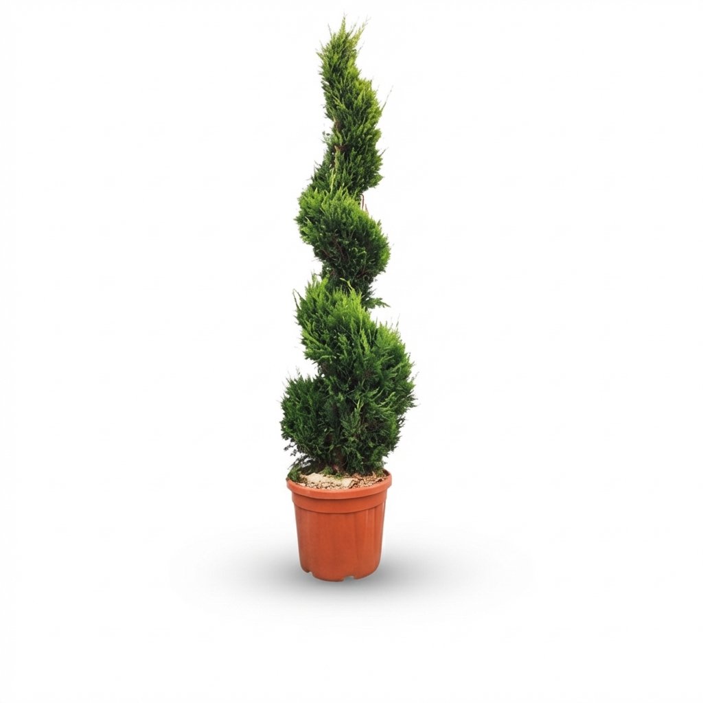 De Cupressocyparis Cast. Gold Spiraal van 210 cm is een indrukwekkende verschijning die direct een gevoel van grandeur toevoegt aan jouw interieur. Deze statige kamerplant, vakkundig gevormd tot een sierlijke spiraal, creëert een groen statement waar je jarenlang plezier van hebt. Het is de ideale keuze wanneer je een opvallende groene blikvanger wilt kopen.