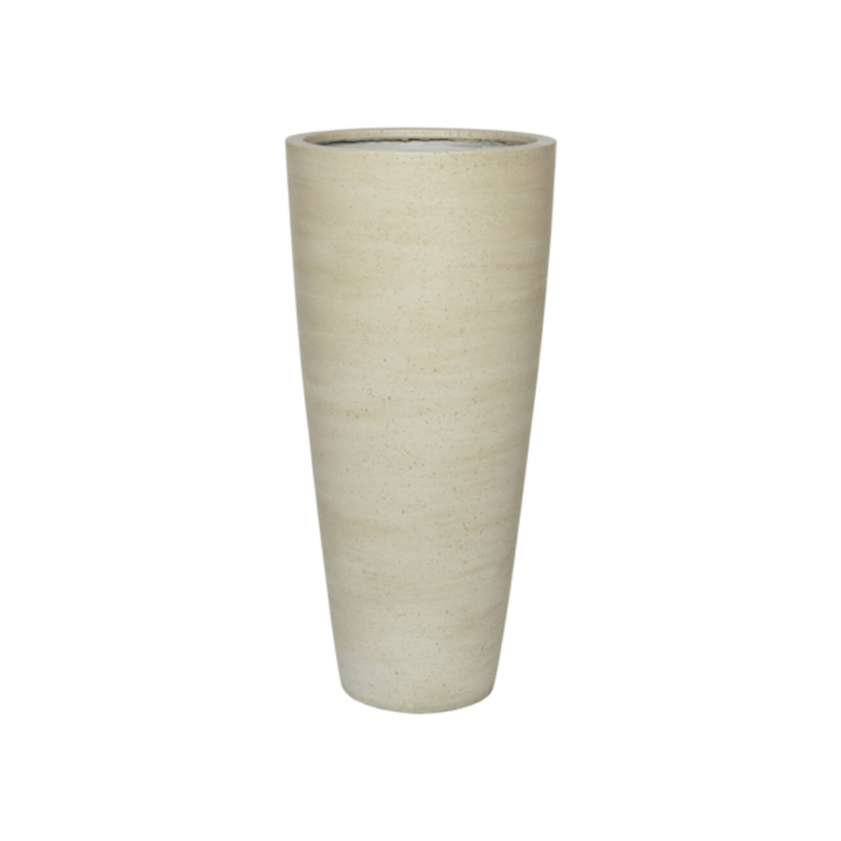 De Dax Washed is gemaakt van ficonstone: een sterke mix van glasvezel en gemalen steen. Daardoor is de pot verrassend lichtgewicht, maar zeer robuust. De beige washed afwerking geeft een matte, natuurlijke look met subtiel verweerd effect en fijne steentextuur. De vorm is hoog en slank cilindrisch met een strakke, licht afgeschuinde rand voor een elegante lijn. Binnenzijde glad afgewerkt om kweekpotten soepel te plaatsen; buitenzijde voelt licht korrelig aan voor extra grip. De neutrale zandtint past moeiteloos in moderne, Scandinavische en Japandi interieurs, maar ook in een warm, botanisch of hotel chic decor.