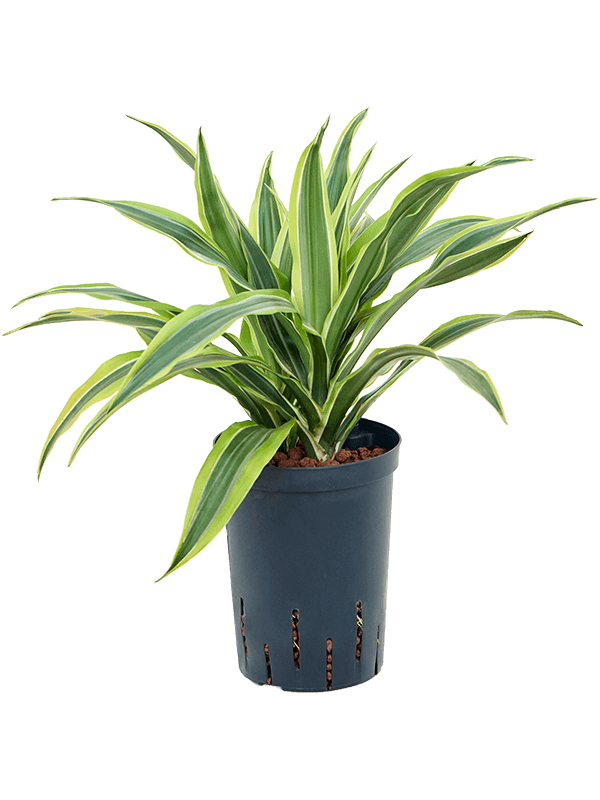 Dracaena fragrans ‘Lemon Lime’ – toef 40 cm in hydrocultuur. Frisse groene bladeren, geschikt voor zonnige plekken. Optie: complete plant + pot service.