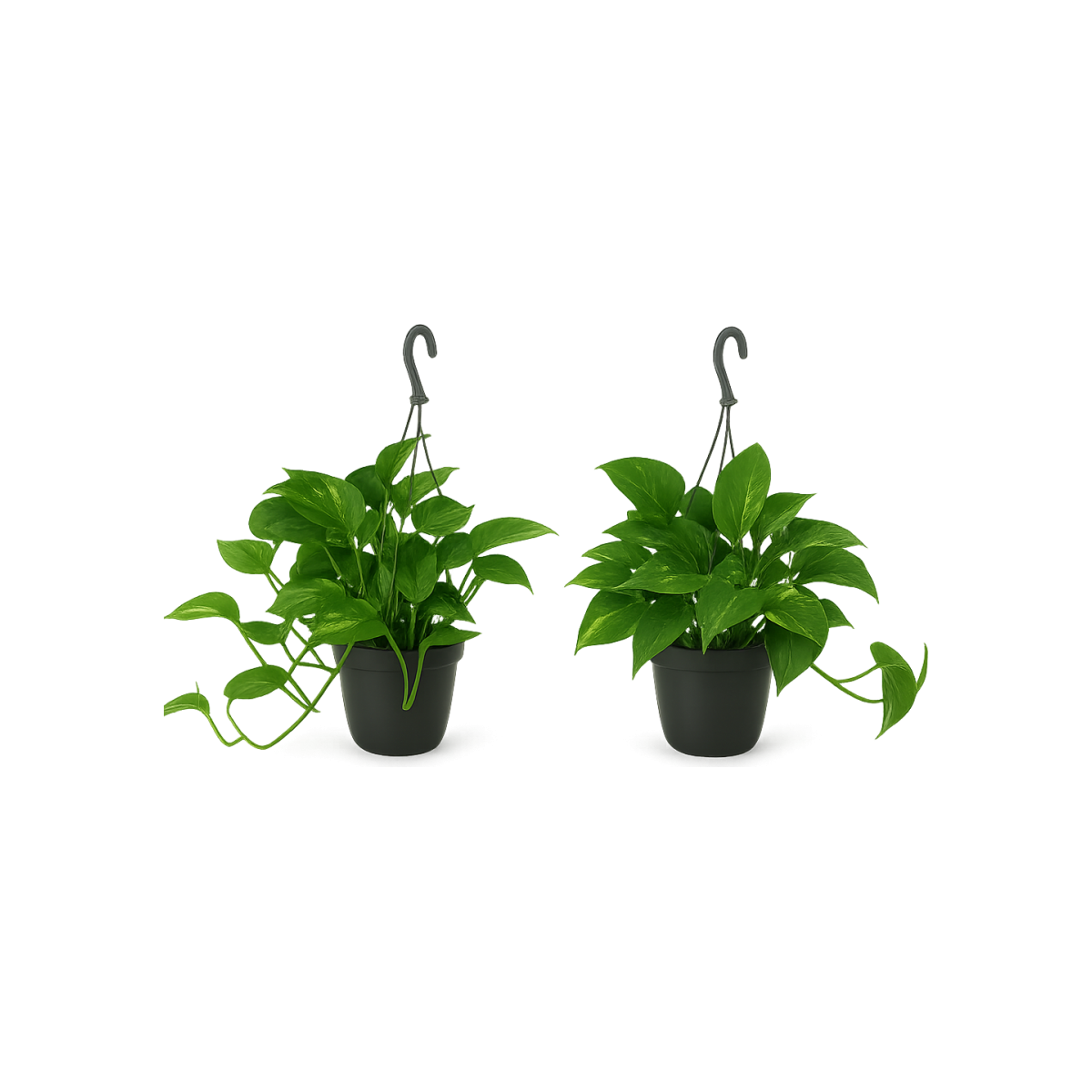 De Epipremnum aureum herken je aan zijn hartvormige, glanzende bladeren met geel- tot lichtgroene marmering. De plant vormt lange, soepele ranken met luchtwortels waarmee hij zich eenvoudig hecht aan een mosstok of klimrek. Als hangplant kan hij meterslange slingers vormen; als klimmer krijgt hij een volle, groene uitstraling. Binnen bereikt hij als hangplant gemakkelijk 1–2 meter lengte (bij goede verzorging). De groeisnelheid is snel: reken op circa 30–60 cm nieuwe groei per jaar. Door af en toe te snoeien stimuleer je vertakking en blijft de plant compact en vol.