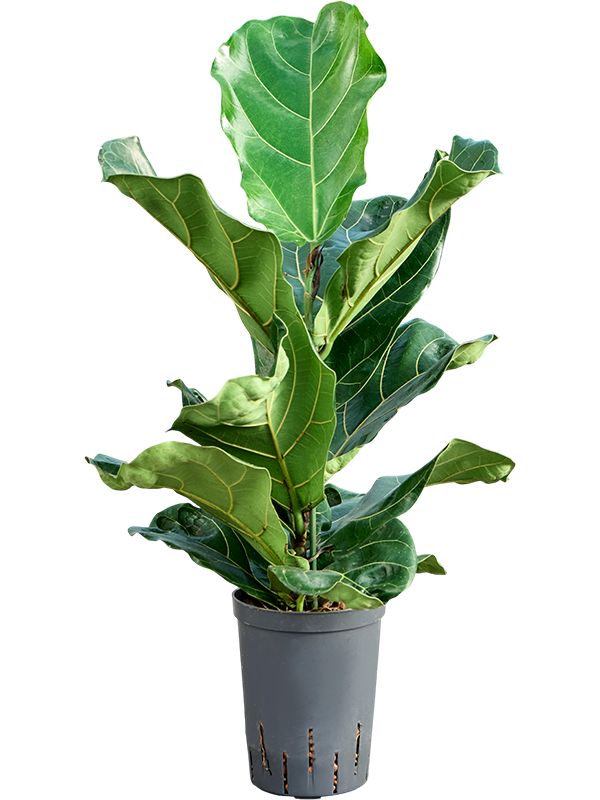 Deze Ficus lyrata wordt geleverd als hydrocultuur plant. Hydrocultuur planten groeien op water met behulp van hydrokorrels (kleikorrels), waardoor de wortels optimaal zuurstof en voeding opnemen.