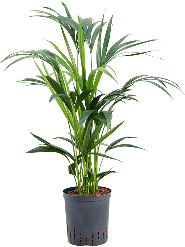Deze Kentia wordt geleverd als hydrocultuur plant. Hydrocultuur planten groeien op water met behulp van hydrokorrels (kleikorrels), waardoor de wortels optimaal zuurstof en voeding opnemen.