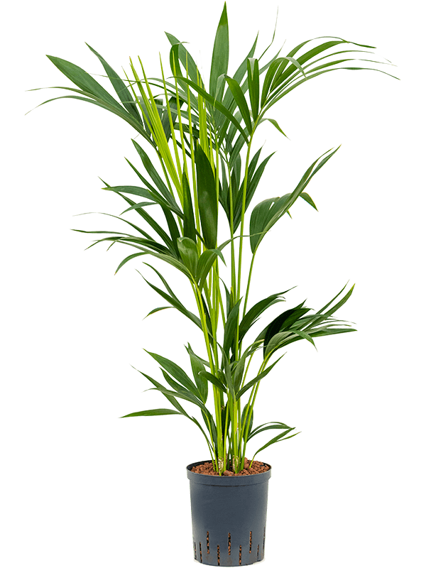 De Kentiapalm (Howea forsteriana) is een populaire kamerpalm met sierlijke overhangende veren. Luchtzuiverend en huisdiervriendelijk.