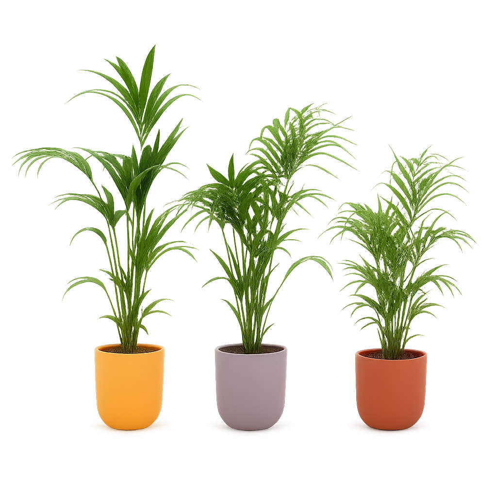 De Howea forsteriana heeft lange, sierlijk gebogen geveerde bladeren in diep glanzend groen. De bladveren waaieren soepel uit voor een volle, tropische look, vaak met meerdere stammen in één pot voor extra volume. Binnenshuis groeit de Kentia langzaam en beheerst: reken op zo’n 5–15 cm per jaar. Een volwassen exemplaar kan binnen 200–250 cm halen. Bloei is zeldzaam in huis, waardoor de plant weinig allergenen verspreidt en ideaal is voor woon- en werkruimtes.