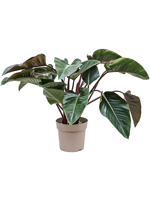 De Philodendron Red Beauty is een tropische kamerplant met opvallend rood-groen blad. Luchtzuiverend.