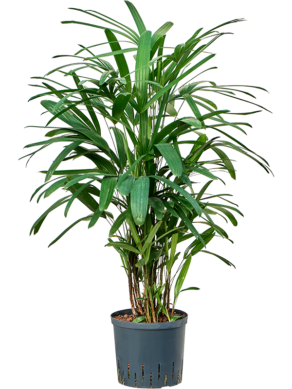 De Rhapis excelsa is een prachtige hydrocultuur plant. Dankzij hydrocultuur groeit deze plant op water in plaats van potgrond, waardoor deze minder onderhoud nodig heeft en langer meegaat.
