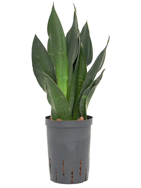 Deze Sansevieria trifasciata ‘Black Diamond’ wordt geleverd als hydrocultuur plant. Hydrocultuur planten groeien op water met behulp van hydrokorrels (kleikorrels), waardoor de wortels optimaal zuurstof en voeding opnemen.