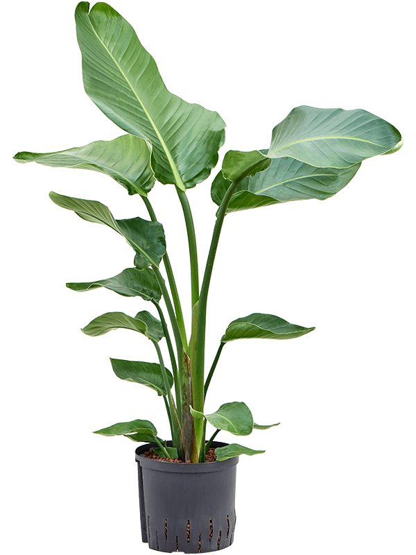 Deze Strelitzia nicolai wordt geleverd als hydrocultuur plant. Hydrocultuur planten groeien op water met behulp van hydrokorrels (kleikorrels), waardoor de wortels optimaal zuurstof en voeding opnemen.