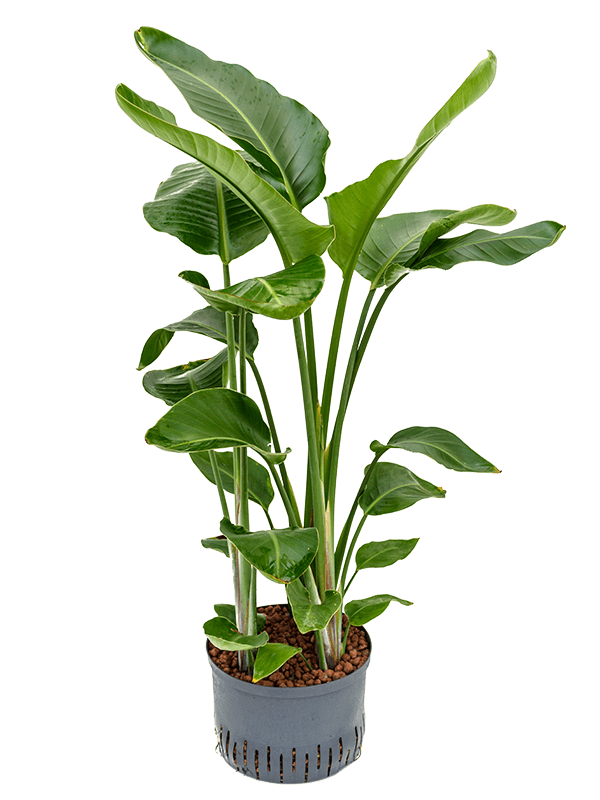 Deze Strelitzia nicolai wordt geleverd als hydrocultuur plant. Hydrocultuur planten groeien op water met behulp van hydrokorrels (kleikorrels), waardoor de wortels optimaal zuurstof en voeding opnemen.