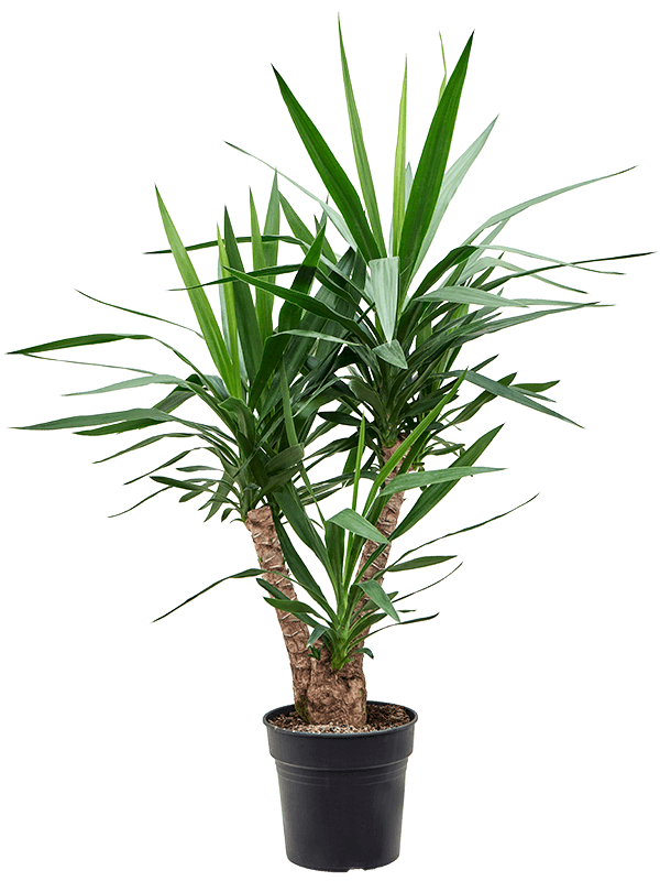 De Palmlelie (Yucca elephantipes) is een stoere, architectonische kamerplant met een dikke stam en zwaardvormige bladeren. Deze plant geeft een moderne, minimalistische uitstraling aan elk interieur en is zeer makkelijk in onderhoud.